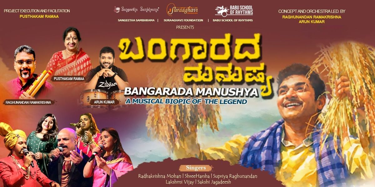 Bangarada Manushya is an emotional musical tribute celebrating the life and legacy of Karnataka’s beloved icon, Dr. Rajkumar. Presented on 23rd April 2026 , the production weaves together powerful narration, timeless songs, and evocative live performances to trace the inspiring journey of Annavru—from his childhood, to his theatre roots, and into becoming a cultural legend who captured the hearts of millions.