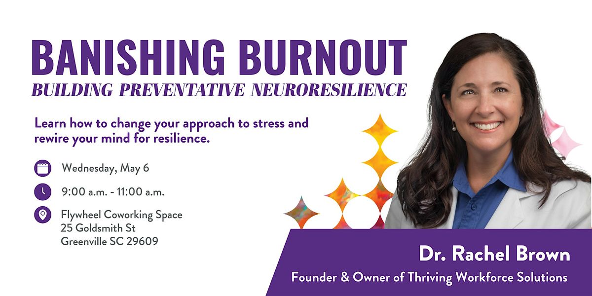 Join us for Banishing Burnout: Building Preventive Neuroresilience, a practical workshop led by researcher Dr. Rachel Brown, Owner and Founder of . In this session, participants will explore the science behind burnout and learn simple, evidence-based tools to strengthen resilience and adapt to chronic stress.