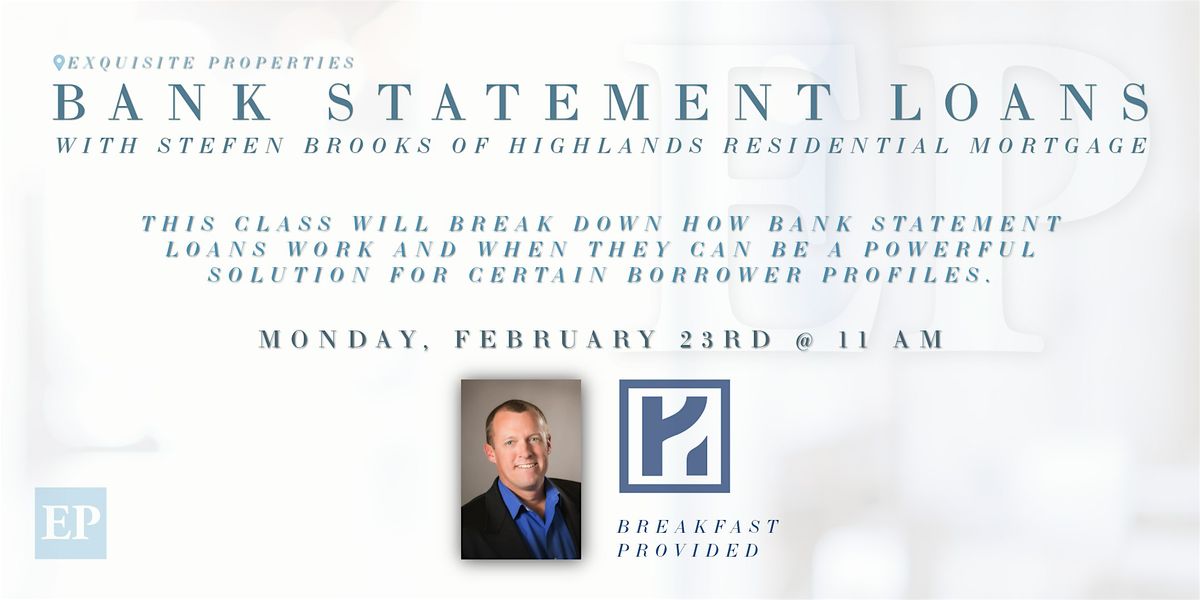 Ready to dive into the world of bank statement loans? Join us in person for a fun and laid-back session where we'll cover all the basics. Whether you're a newbie or just curious, this event breaks down how these loans work using your bank statements — no tax returns needed! Come hang out, ask questions, and get the lowdown on a loan option that might just be perfect for you.