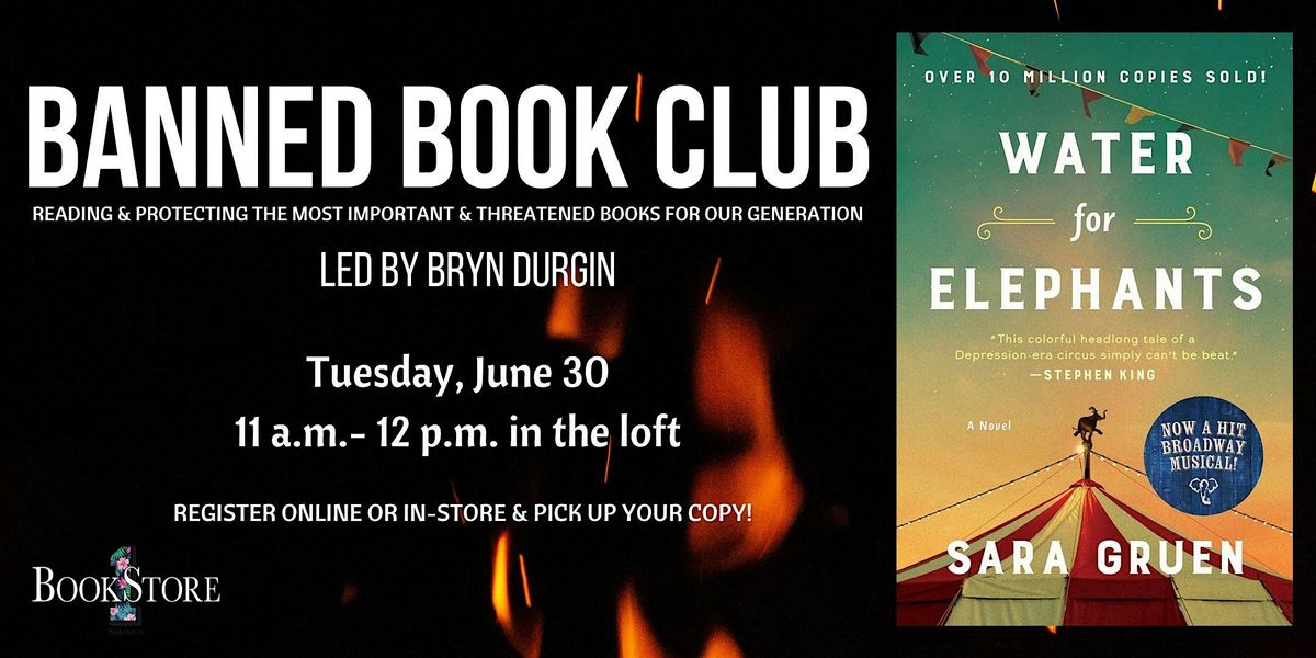 We will meet in person in the loft at our store at The Mark, 117 S. Pineapple Ave. The book club is $18.99, which includes a copy of Water for Elephants to be picked up at Bookstore1 any time before our meeting.