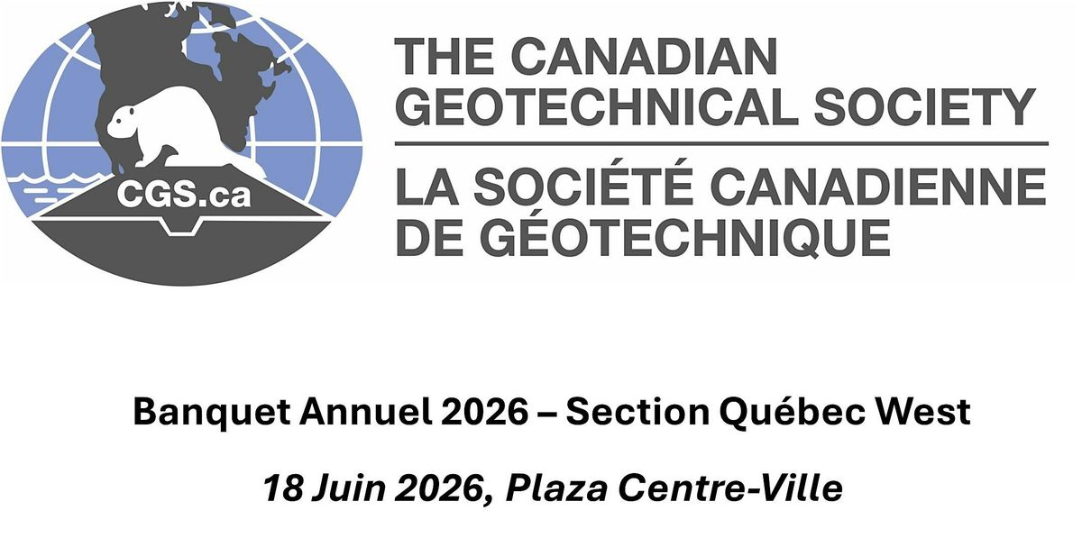 Le souper annuel de la SCG section Québec West se tiendra au Plaza Centre Ville le 18 juin. Cette soirée permettra à la section locale de présenter un sommaire des réalisations durant l'année 2025, un survol de l'état financier de la section, et la présentation des activités prévues pour les 12 prochains mois.