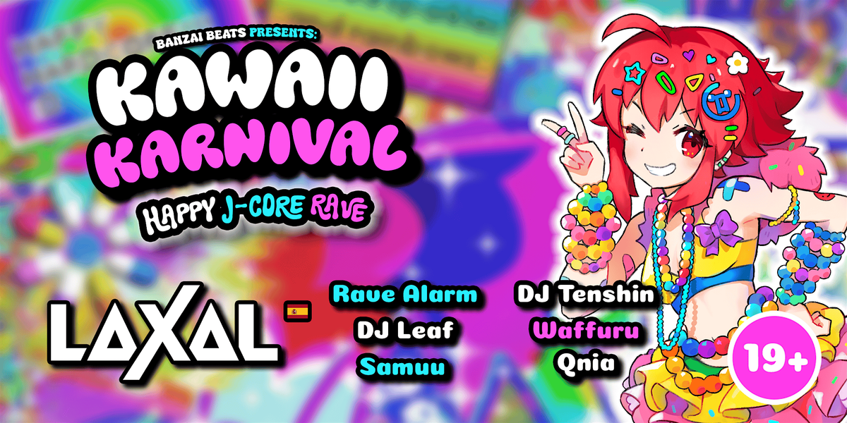 Coming all the way from Spain, we have super talented Happy Hardcore producer LaXal, who's shared stages with such awesome artists like S3rl, DJ Shimamura, Toriena, and DJ Myosuke! We also have with us local legends Rave Alarm, who have been giving life to the Toronto J-core scene for ages! With the collection of our usual local talents, all bringing you high kawaii energy tunes, you'll be sure to be dancing and vibing all night! Don't miss it!