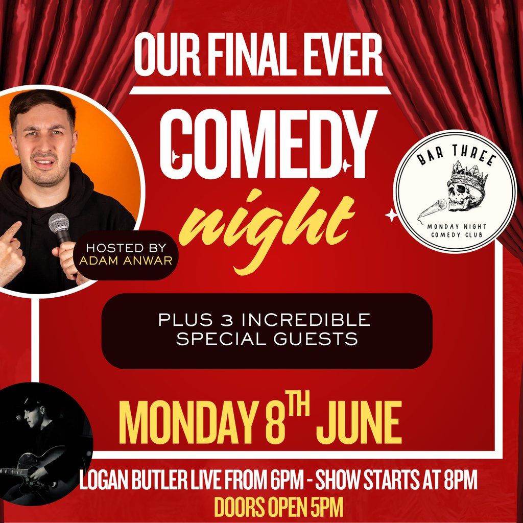These nights have been an absolute ball, but all good things come to an end! We're having our final Monday night comedy on the 8th June.