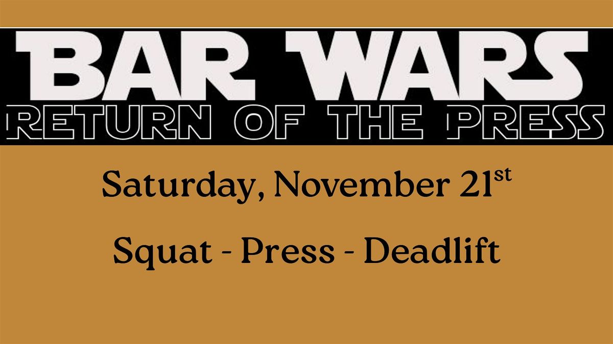 Bar Wars - Return of the Press. Our annual Squat, Press, and Deadlift competition now in its 14th year.About this Event