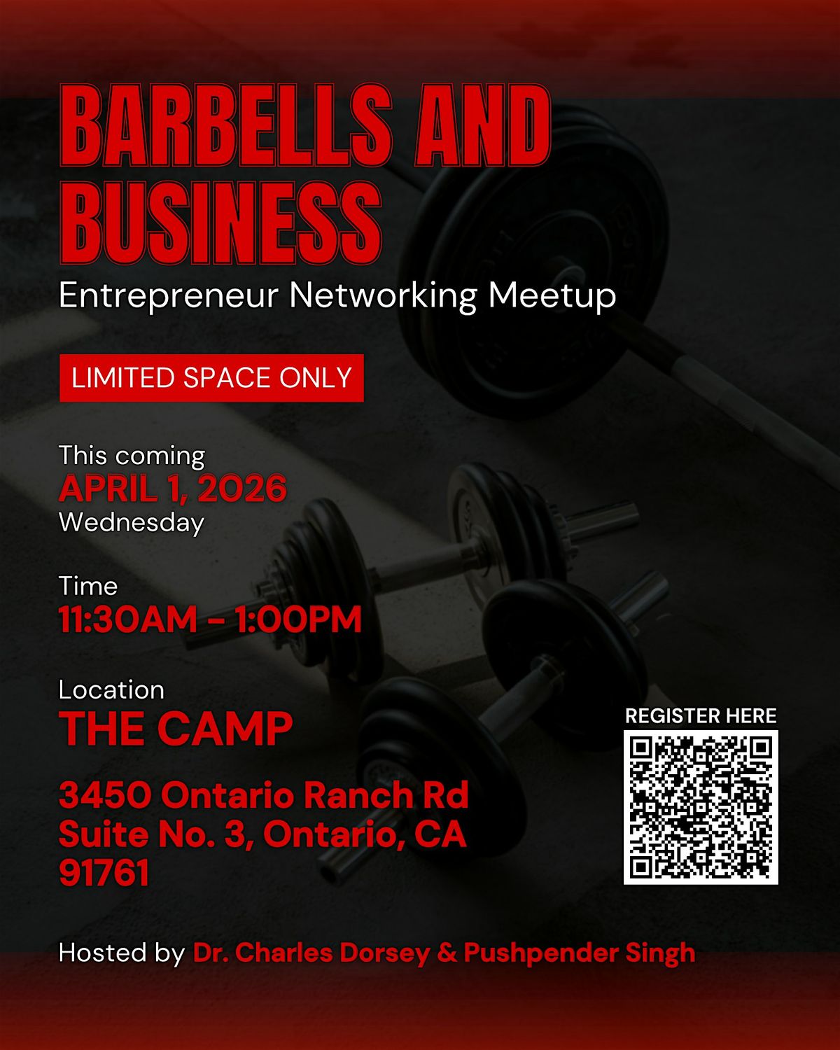 Join us at THE CAMP on April 1, 2026, from 11:30 AM to 1:00 PM, hosted by Dr. Charles Dorsey and Pushpender Singh. With limited space available, this meetup offers a great opportunity to network, collaborate, and grow with like-minded business leaders.