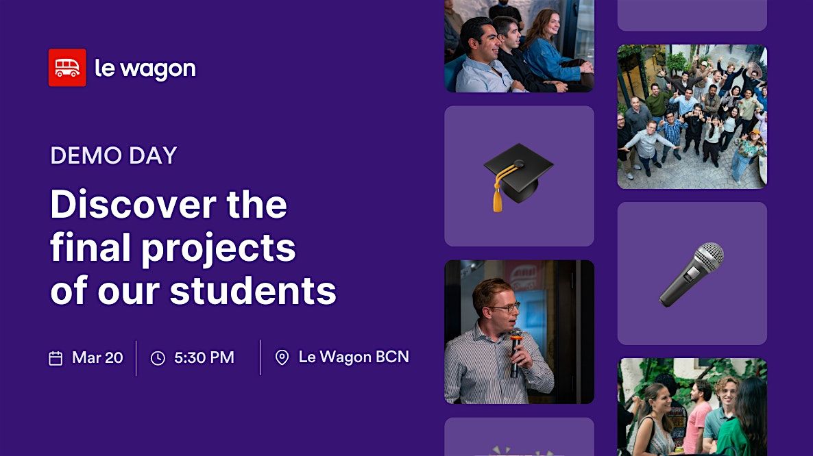 Curious to see what you can build after 9 weeks at Le Wagon? Join our Demo Day in Barcelona and find out.