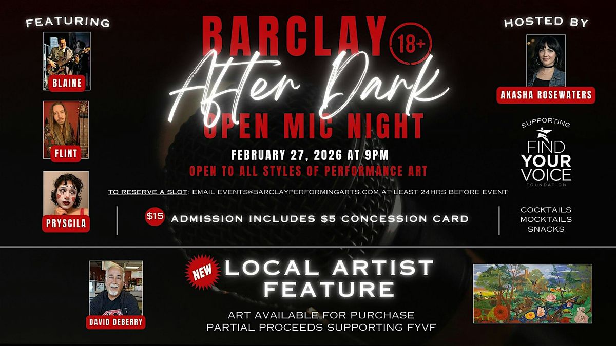 BARCLAY AFTER DARK OPEN MIC NIGHT 2/27 9PM