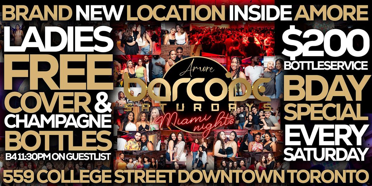 Barcode Saturdays is Toronto’s weekend party ritual inside AMORE located at 559College Street, the Heart of Toronto’s Little Italy entertainment hub. See you this Saturday!!!!VIP BOTTLE SERVICE PACKAGES AVAILABLE