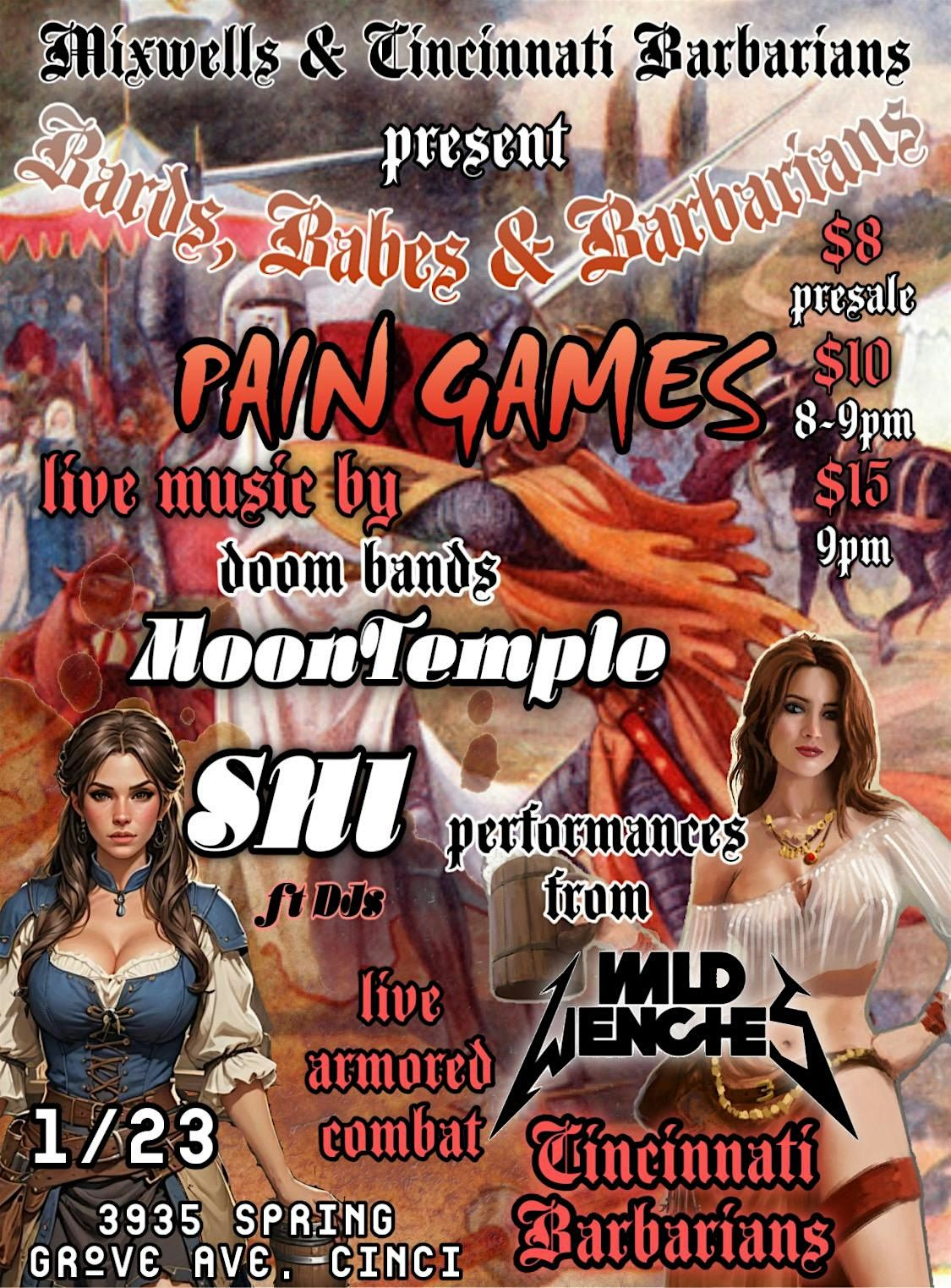 Here ye, here ye! Wenches, knights, and harlots alike, Mixwells presents to thee another night filled with battles, babes, and the Cincinnati Barbarians. Join us for a night of REAL LIFE ARMORED COMBAT - swinging of swords, wenches serving shots, and drinks all around!