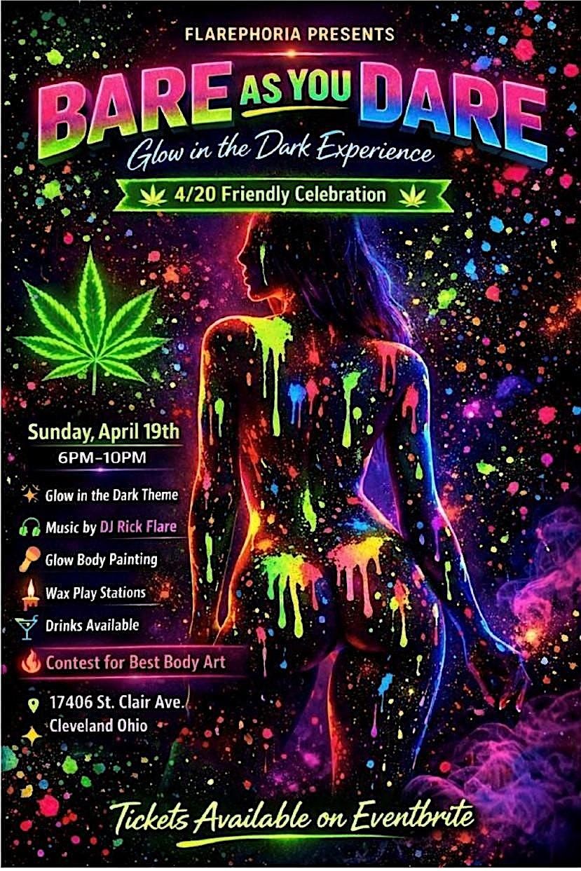 Flarephoria presents: Bare As You Dare – Glow in the Dark Experience — a high-vibe, immersive 4/20-friendly celebration designed for those who love to stand out, let go, and fully embrace the moment.