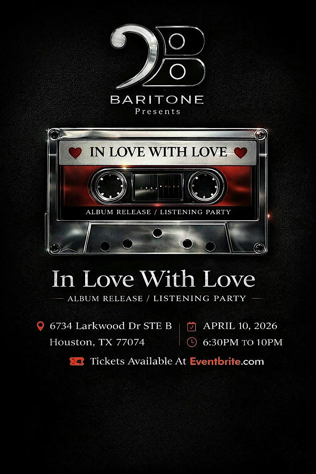 Join Baritone for an unforgettable evening as he unveils his highly anticipated album, In Love With Love, at an exclusive Listening Party & Album Release Experience in Houston, TX on April 10th, hosted by Scott Free. This intimate and immersive event invites guests to hear the project in its purest form exactly as it was created while stepping inside the story, emotion, and intention behind every lyric, sound, and silence. More than a listening party, this is a celebration of purpose, creativity, and the journey still being written.Surrounded by fellow creatives, supporters, and tastemakers, attendees will experience the soundtrack to Baritone’s evolution in a refined atmosphere designed for connection, inspiration, and reflection. Be among the first to witness the moment the music meets the people, and the story meets its audience.