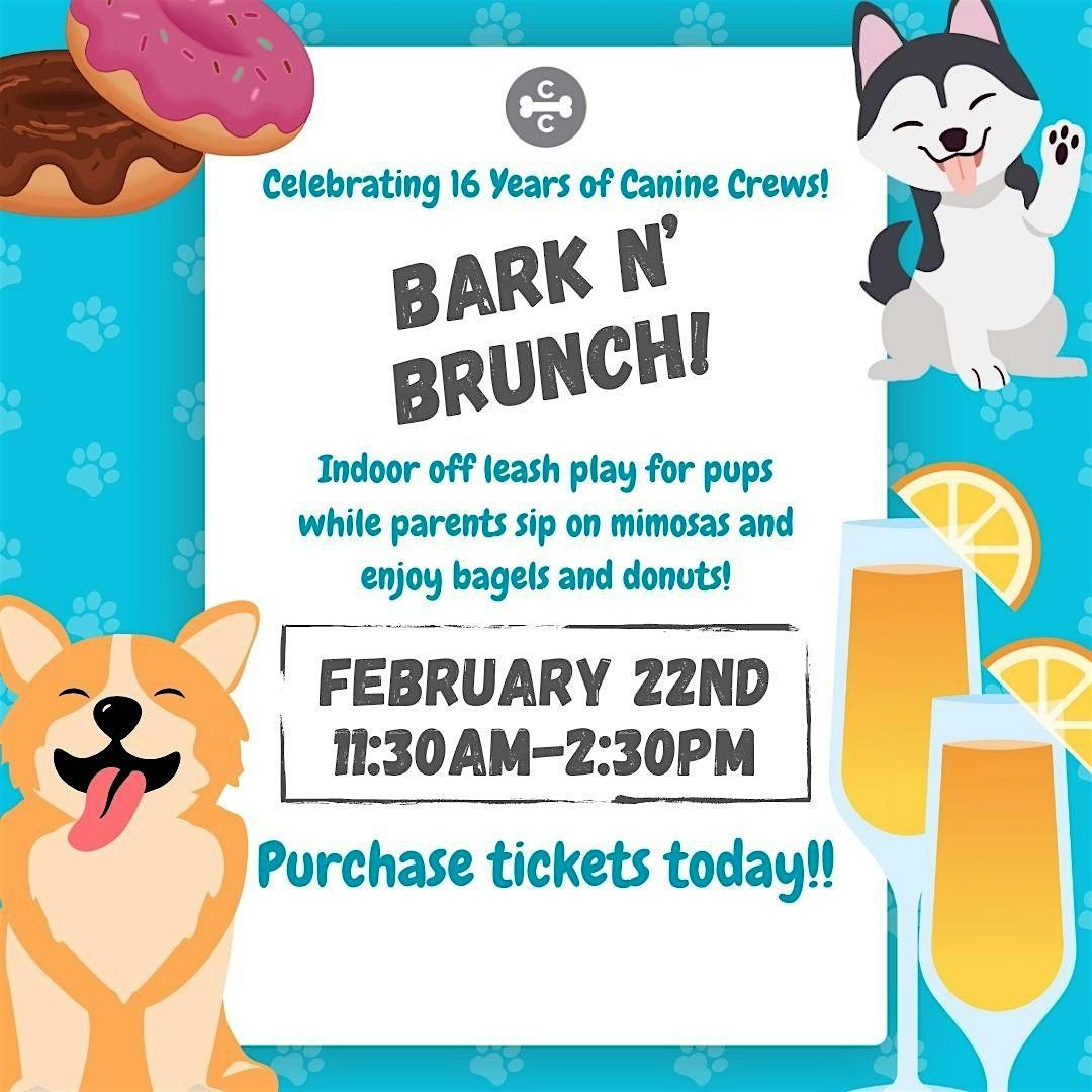 Bring your pup and your friends and join us for a Bark N Brunch party celebrating 15 years of Canine Crews. We will have brunch pastries, mimosas & bloody mary's along with soda & beer. Every attendee is entered in our drawing as well as some fun events like: musical sits and longest sit - and that's just for the dogs. Each guest will leave with a goody bag for their pup and their dog will have a BLAST playing with their buddies. 18+ ONLY. No kids allowed in this event.