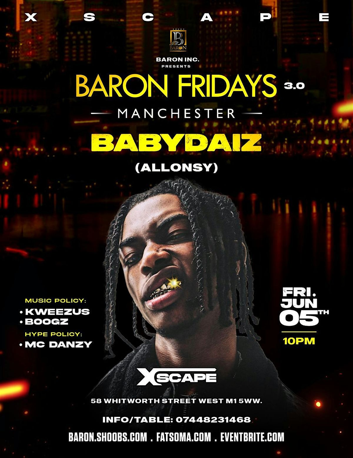 Get ready to dance the night away with BABYDAIZ (Allonsy) at BARON FRIDAYS in XSCAPE MCR - it's gonna be lit!About this Event