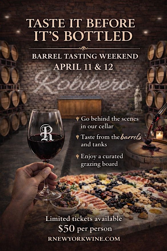 Go behind the scenes and taste the 2025 and older, barrel-aged gems straight from the source — sampled directly from oak barrels, stainless steel tanks, and our newest addition, the concrete vessel.