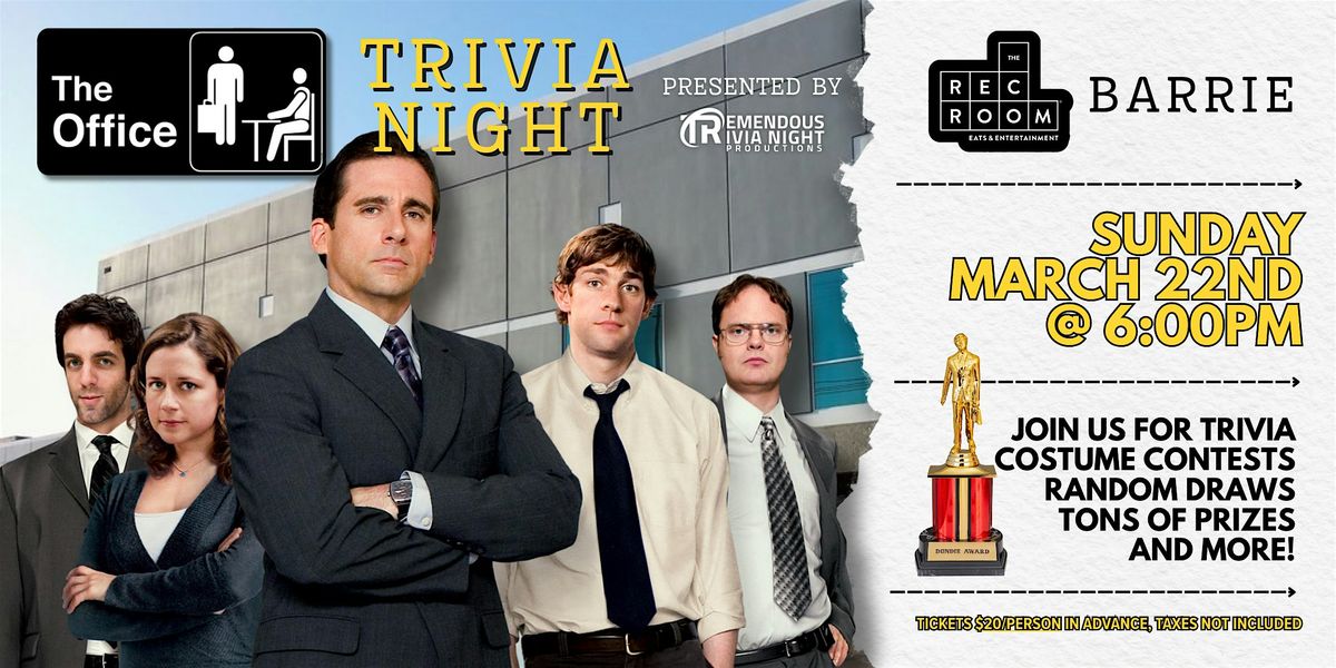 Tremendous Trivia is calling a meeting - everyone to the conference room, because it's time for Office Trivia! Like you needed an excuse to rewatch the Office for the 15th time? It's time to prepare for the ultimate trivia showdown. Round up your crew (teams of up to 8) and compete for your own Dundie Award as Office Trivia Champion!