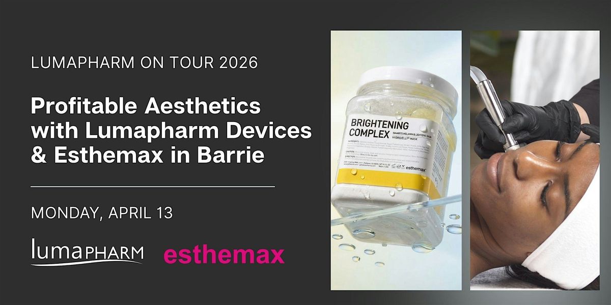Join us in Barrie for an event focused on building profitable aesthetic treatments using Lumapharm devices and Esthemax professional skincare.