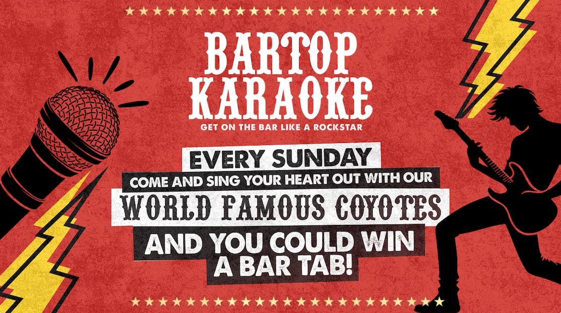 Always fancied yourself as a Coyote? Join our world-famous Coyotes on top of the bar, and sing your heart out at Bartop Karaoke! Pick your song, and take centre stage on top of the bar - you could even win a bar tab!