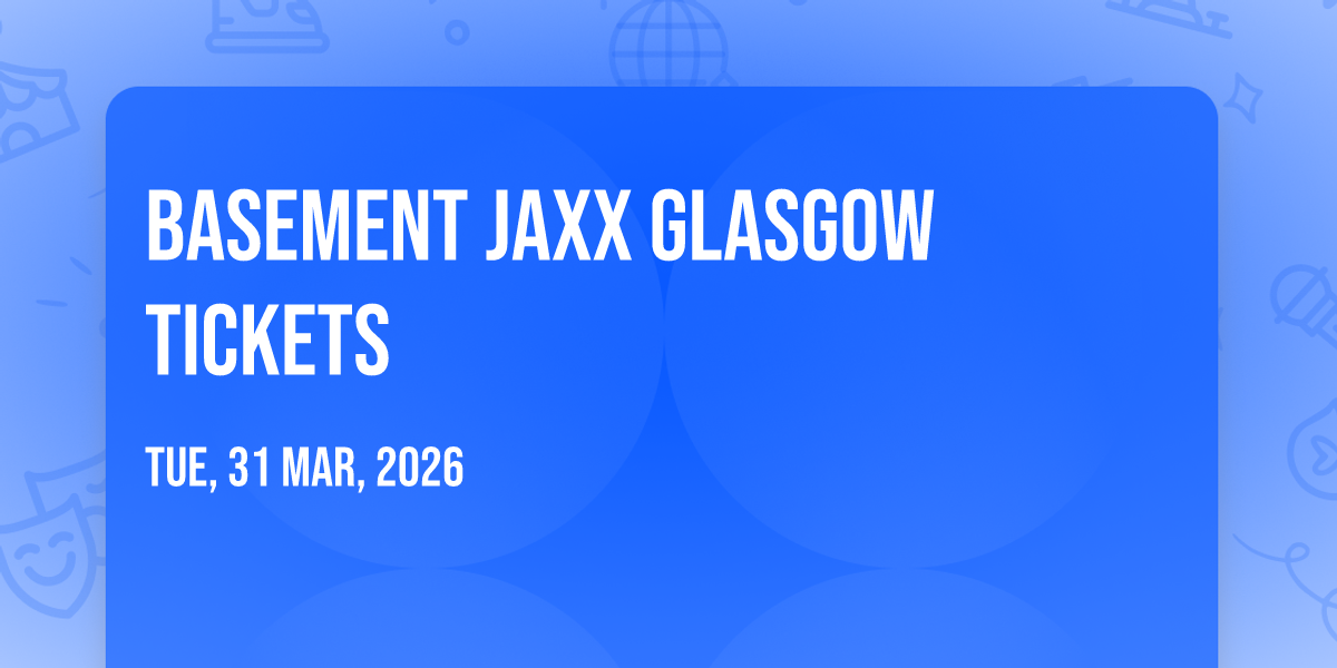 Basement Jaxx at Glasgow Royal Concert Hall🎉 Welcome to Basement Jaxx Glasgow Tickets, where the impossible becomes possible and dreams take flight! 🏛️ Join us at Glasgow Royal Concert Hall in the heart of Glasgow, SC for an event that will redefine your expectations. 📅 On March 31st, 2026 at 07:00 PM, witness the transformation of space and time into something truly magical. ✨ It's a curated experience combining the best of innovation, entertainment, and community spirit, creating moments that will be remembered for years to come. Whether you're a first-time visitor or a seasoned enthusiast, prepare to be amazed. 🎫 Get your tickets at 434.23 EUR. 🎊 Book now to ensure your place in this unforgettable experience!