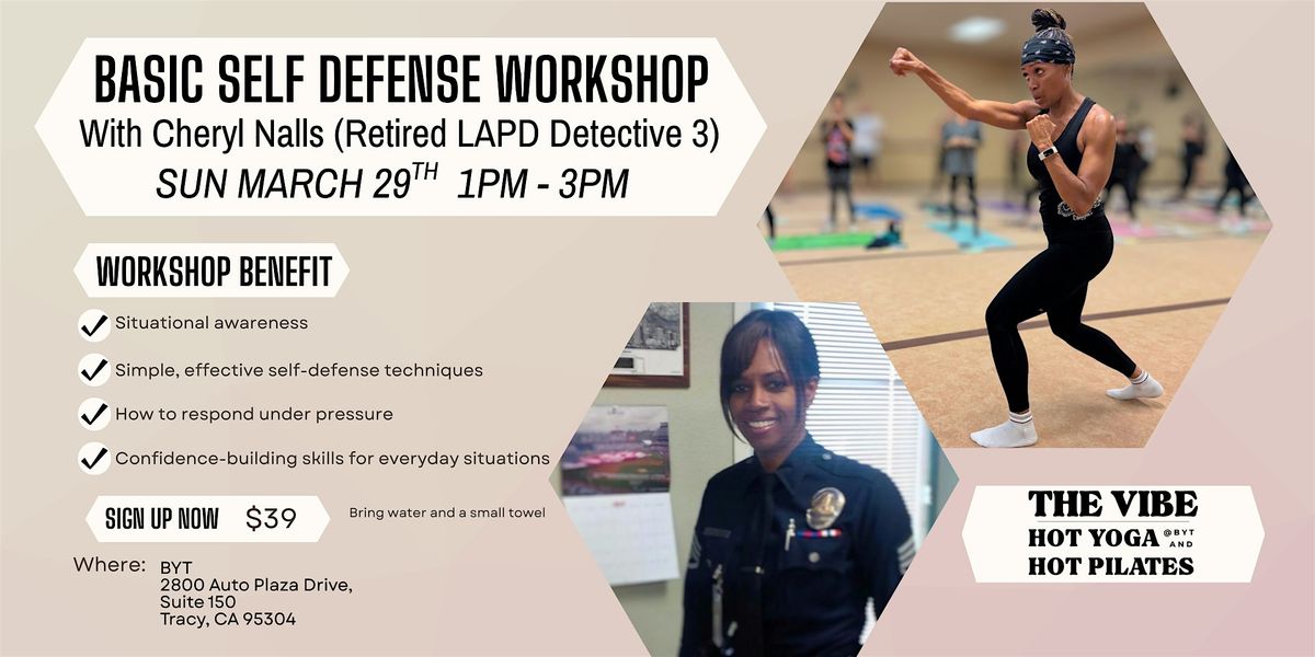 Join us for a powerful and practical Basic Self-Defense Workshop led by Cheryl Nalls, a retired LAPD Detective III with decades of real-world experience, now a fitness instructor at Bikram Yoga Tracy.