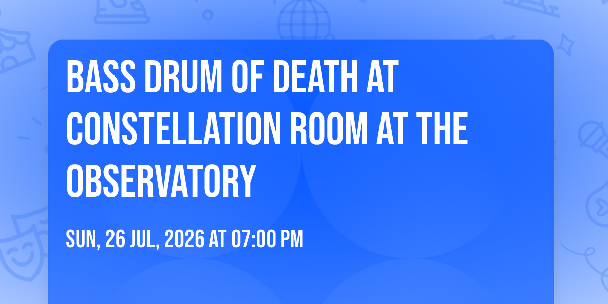 ✨ Discover the extraordinary at Bass Drum of Death at Constellation Room at The Observatory, where magic meets reality in ways you've never imagined! 🏛️ Set in Constellation Room at The Observatory nestled in bustling Santa Ana, CA, this event promises to be a landmark occasion. 📅 Taking place on July 26th, 2026 at 07:00 PM, it's going to create an atmosphere where every moment becomes a cherished memory. 🌟 Immerse yourself in an experience crafted with attention to every detail, designed to surprise and delight at every turn. They have worked tirelessly to ensure this event exceeds all expectations, bringing together elements of entertainment, innovation, and pure joy. 🎊 Don't miss your chance to be part of this remarkable journey!