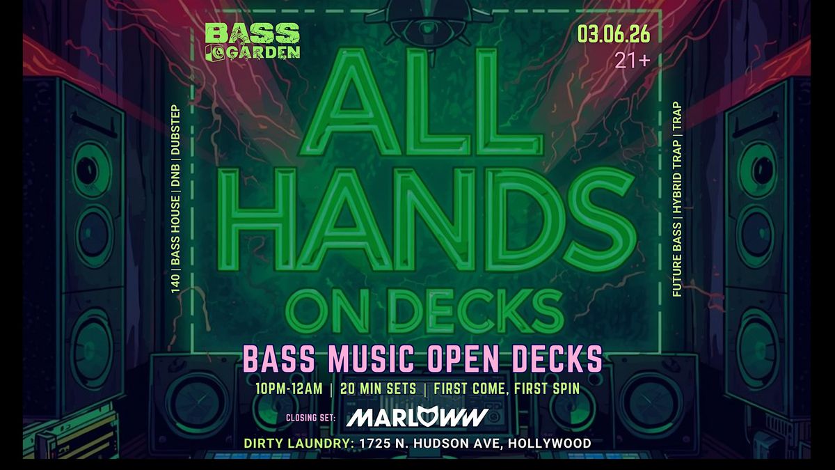 ALL HANDS ON DECKS, our bass-music open decks night is back Friday, March 6th. If you spin 140, bass house, dnb , dubstep, future bass, hybrid trap, trap, or UKG...BRING YOUR USBs!