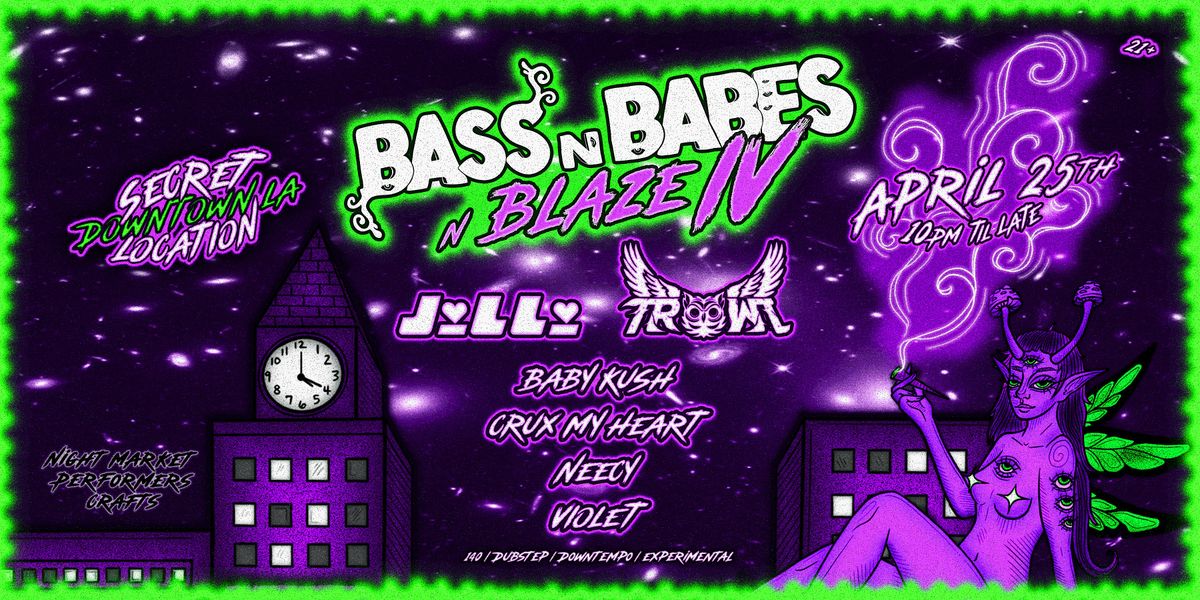 It’s a great day to be a queer stoner, smoker, or toker or friend who doesn’t smoke but is chill about it anyway! 👽🍃💨Bass n Babes n Blaze is back for our fourth annual 420 event, and we are so excited to present a JiLLi and Trowl co-headline!