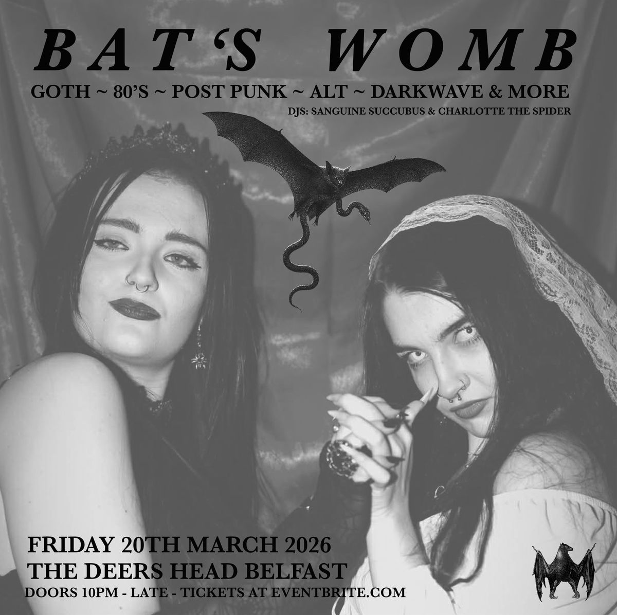Bat’s Womb ~ Goth Club Night at The Deers Head Belfast 20/3/26 ~ Doors 10pm