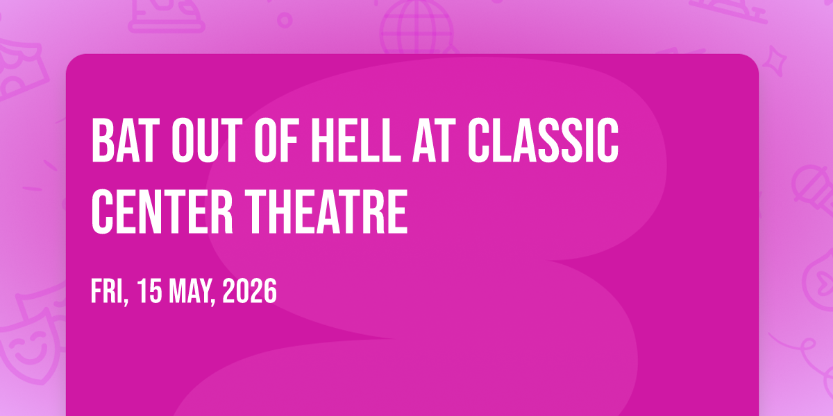 ✨ Experience the magic of Bat Out Of Hell at Classic Center Theatre, where moments become memories that last a lifetime! 🏛️ The iconic Classic Center Theatre in Athens, GA sets the perfect stage for an unforgettable celebration on May 15th, 2026 at 07:30 PM. 🌟 It's been a curated experience that brings together the best of entertainment and innovation, creating an atmosphere of wonder and excitement. From the moment you arrive, you'll be immersed in a world where the ordinary transforms into the extraordinary. 🎊 Book early to secure your place in what promises to be an event that will be talked about for years to come!