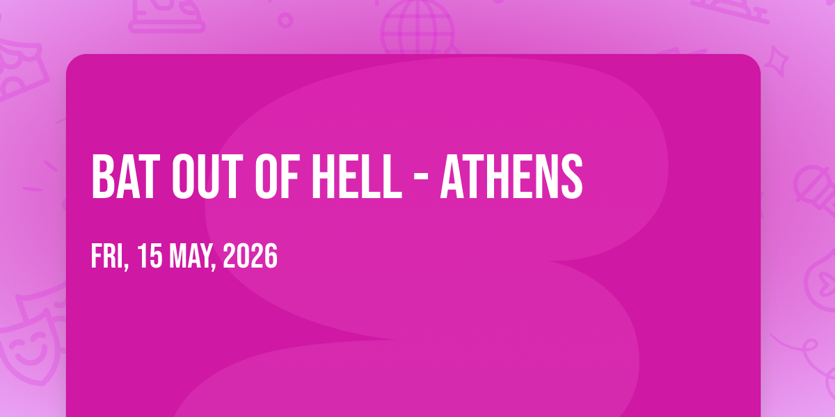 📍 Location: 33.96, -83.3727🌟 Journey into wonder at Bat Out Of Hell - Athens, where extraordinary experiences await around every corner! 🏛️ Set against the backdrop of The Classic Center Theatre in dynamic Athens, GA, this event promises to exceed all expectations. 📅 Join us on May 15th, 2026 at 11:30 PM for a celebration that combines innovation, entertainment, and community spirit in perfect harmony. ✨ There will be an atmosphere where memories are made and stories come alive, ensuring every guest experiences something truly remarkable. 🎊 This is more than just an event; it's a journey into the extraordinary!