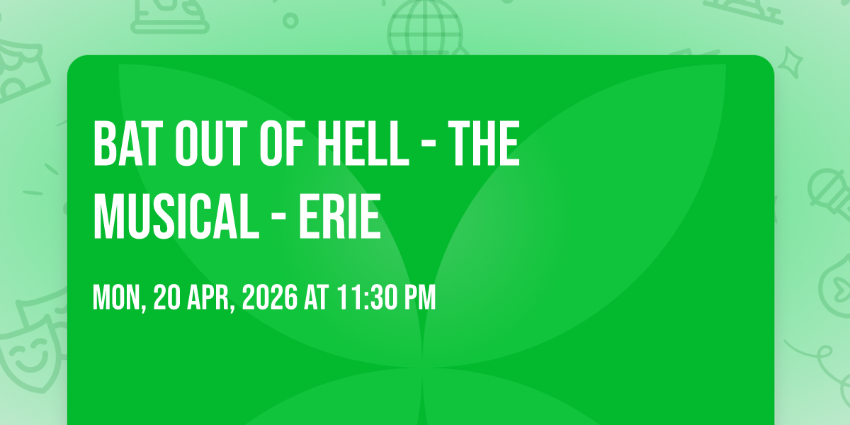 📍 Location: 42.1274, -80.0827✨ Discover the extraordinary at Bat Out Of Hell - The Musical - Erie, where magic meets reality in ways you've never imagined! 🏛️ Set in Warner Theatre - PA nestled in bustling Erie, PA, this event promises to be a landmark occasion. 📅 Taking place on April 20th, 2026 at 11:30 PM, it's going to create an atmosphere where every moment becomes a cherished memory. 🌟 Immerse yourself in an experience crafted with attention to every detail, designed to surprise and delight at every turn. They have worked tirelessly to ensure this event exceeds all expectations, bringing together elements of entertainment, innovation, and pure joy. 🎊 Don't miss your chance to be part of this remarkable journey!