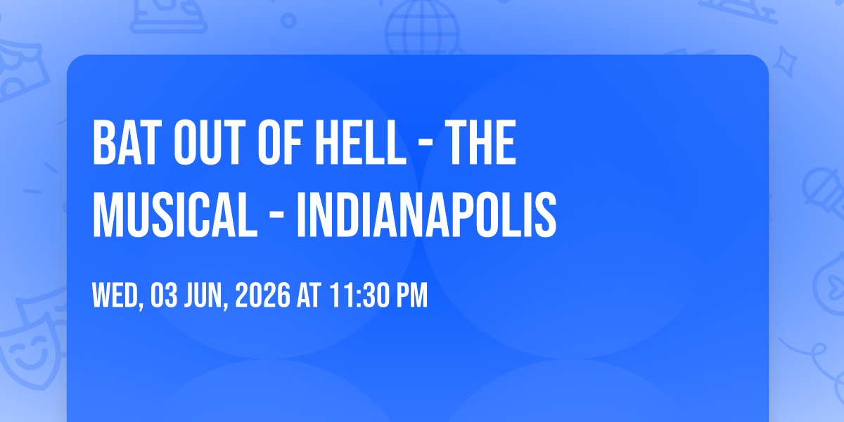 📍 Location: 39.8395, -86.169✨ Discover the extraordinary at Bat Out Of Hell - The Musical - Indianapolis, where magic meets reality in ways you've never imagined! 🏛️ Set in Clowes Memorial Hall nestled in bustling Indianapolis, IN, this event promises to be a landmark occasion. 📅 Taking place on June 3rd, 2026 at 11:30 PM, it's going to create an atmosphere where every moment becomes a cherished memory. 🌟 Immerse yourself in an experience crafted with attention to every detail, designed to surprise and delight at every turn. They have worked tirelessly to ensure this event exceeds all expectations, bringing together elements of entertainment, innovation, and pure joy. 🎊 Don't miss your chance to be part of this remarkable journey!