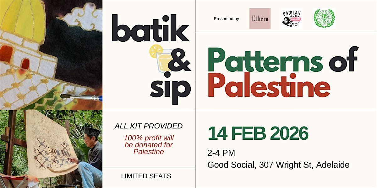 Join us for Batik & Sip: Patterns of Palestine, a relaxed and welcoming charity art workshop.