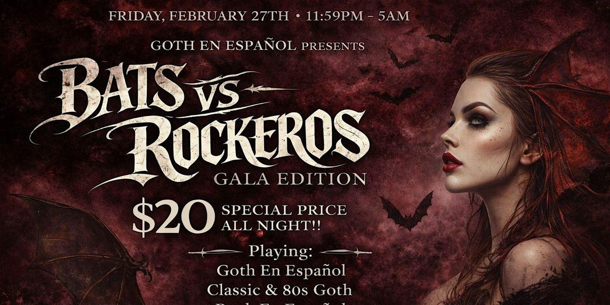 If you were ever curious to attend our GOTH EN ESPAÑOL midnight events, now is the time with this special $20.00 all-night event specially catered for BATS and ROCKEROS!