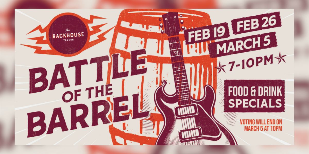 It all comes down to three Thursdays! Join us at The Rackhouse Tavern for the First Annual Battle of the Bands, a three-week live music competition where local talent takes the stage—and you decide the winner.