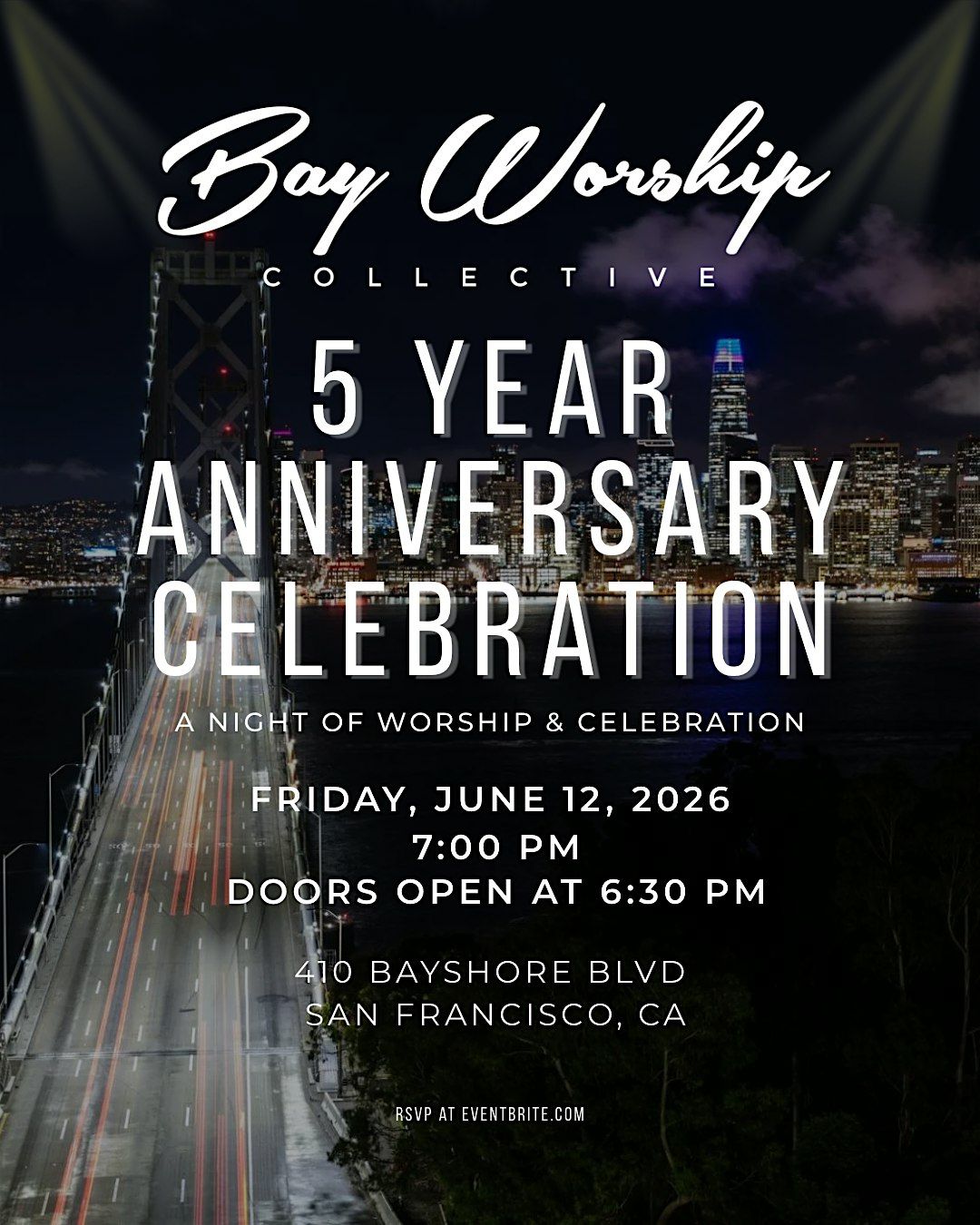 Join the Bay Worship Collective's past, present and future members in celebrating 5 years through a night of worship and celebration.