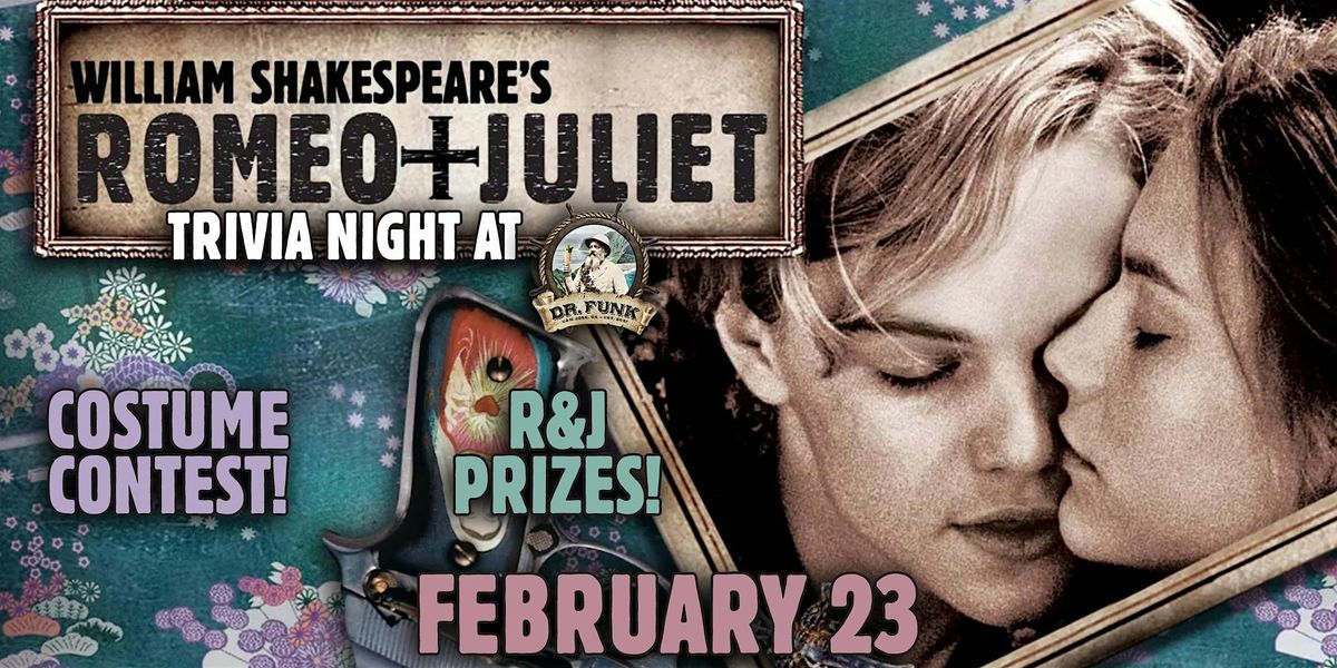 #RomeoAndJuliet #BazLuhrmann #StarCrossedLovers #TriviaNight #DrFunk #MovieTrivia #CostumeContest #90sCinema #RiskyQuizness 💔🌹🔥