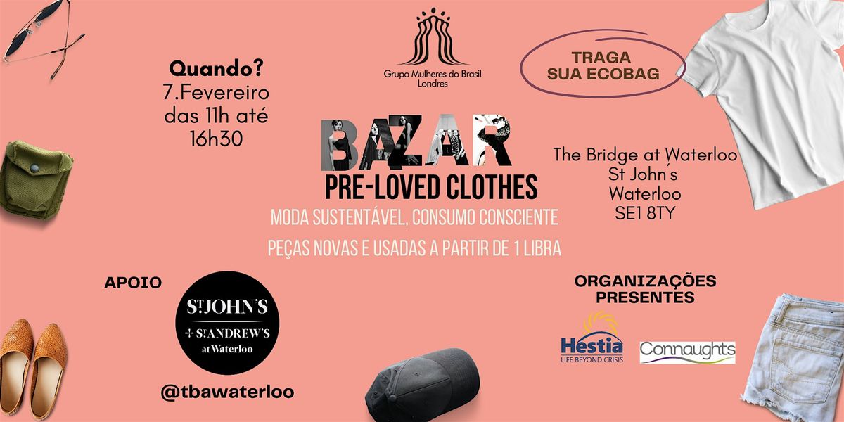 O Grupo Mulheres do Brasil – Núcleo Londres está organizando Bazar para Venda e Troca de Roupas, Calçados, Acessórios, Brinquedos e Livros Infantis, com o objetivo de: