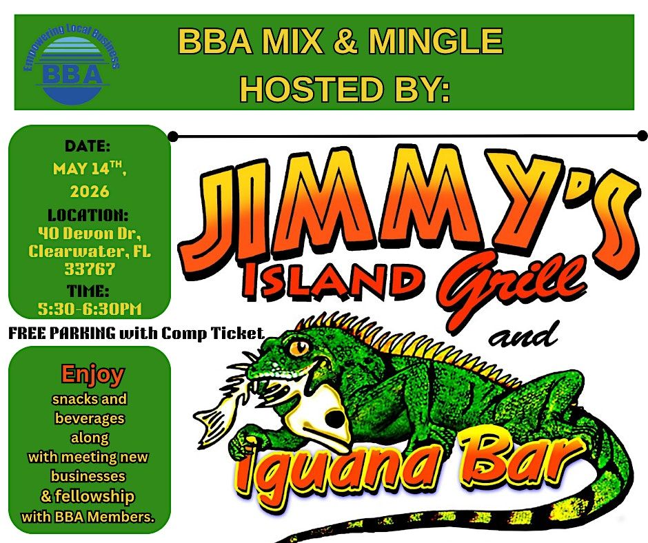 🌴🦎 BBA MIX & MINGLE at Jimmy’s Island Grill & Iguana Bar! 🦎🌴