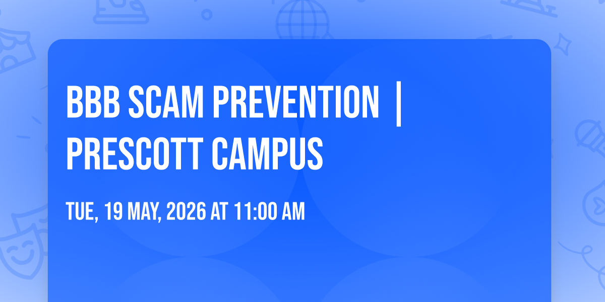 Join the Better Business Bureau at our Prescott Campus for an engaging, eye-opening Scam Prevention Workshop designed for consumers, seniors, and anyone who wants to stay one step ahead.