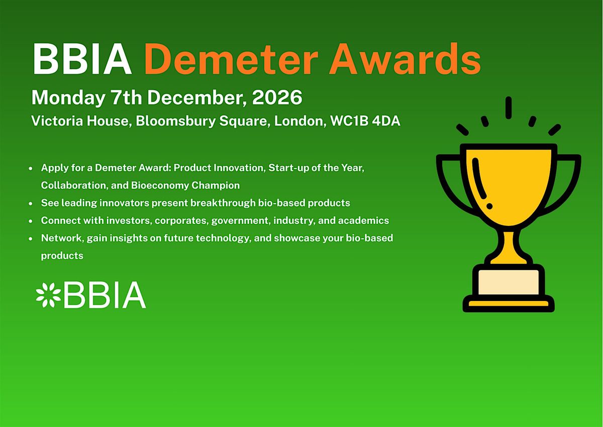 - Apply to become the winner of one our amazing Demeter Awards: Product Innovation Award, Start-up-of-the-year Award, Collaboration Award, and Bioeconomy Champion Award.