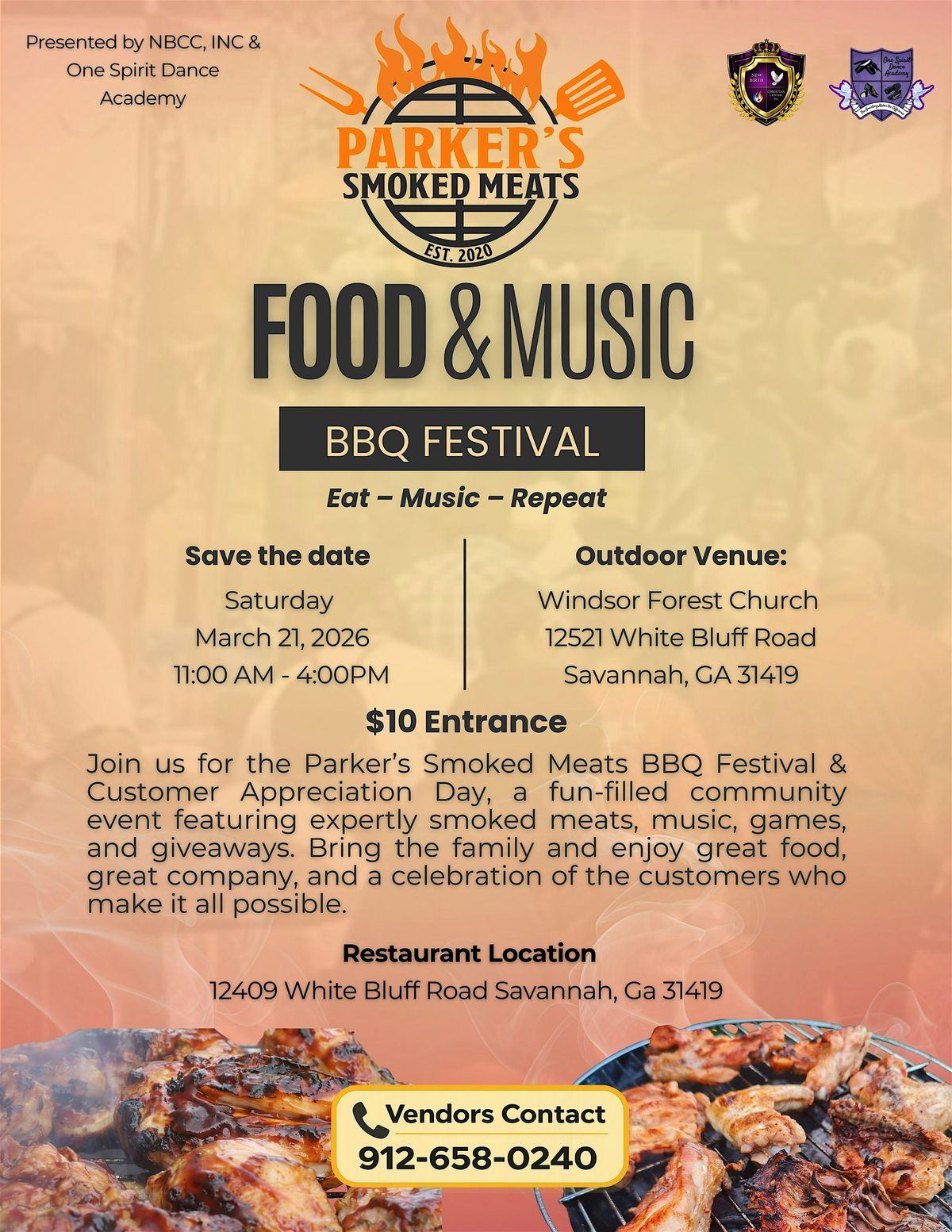 Welcome to the BBQ Festival: Parker's Smoked Meats! Get ready for a mouthwatering experience at 12521 White Bluff Rd on March 21, 2026 at 11:00 AM (Eastern Time). Join us for a day filled with delicious smoked meats, tasty sides, and refreshing drinks. Don't miss out on the opportunity to indulge in some of the best BBQ in town! Grab your friends and family for a fun and flavorful day out. See you there!