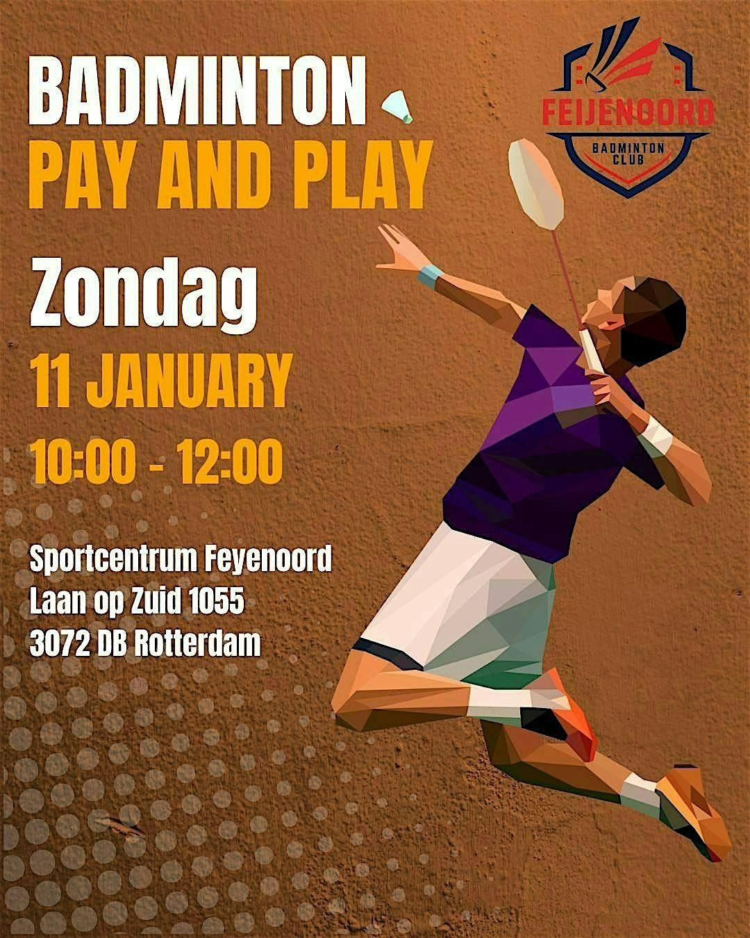 Hey there, sports enthusiasts! Join us for a fun-filled day at the Feyenoord Sports Center. Get ready to show off your badminton skills and compete with fellow players. Whether you're a beginner or a seasoned pro, this event is perfect for anyone looking to have a great time and meet new people. Don't miss out on this exciting opportunity to enjoy some friendly matches and maybe even learn a thing or two from other players. See you there!