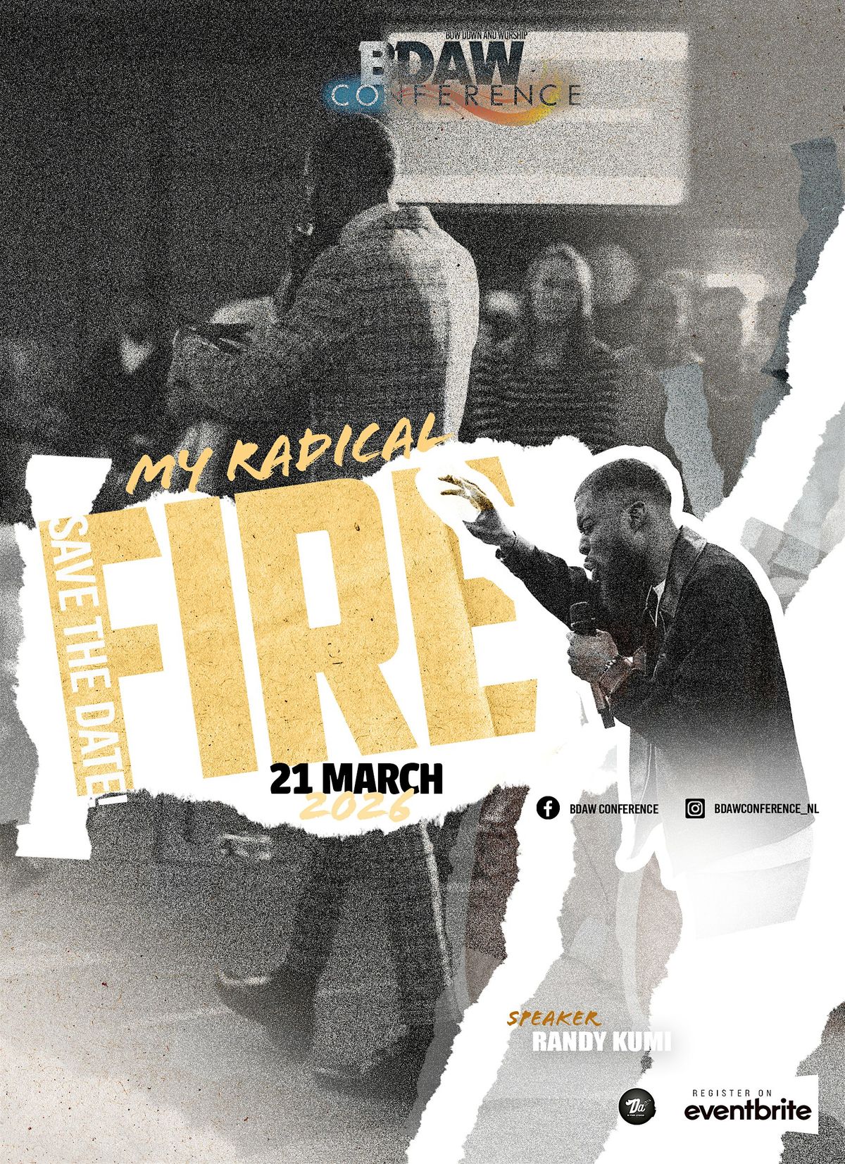 The theme for the fifth edition of BDAW is called 'My Radical Fire'. Join us for what is expected to be an explosive gathering of people ready to ignite a radical fire for JESUS. We believe an army of hungry men and women is being raised for the Kingdom as the city of The Hague is yet to discover its true spiritual influence.