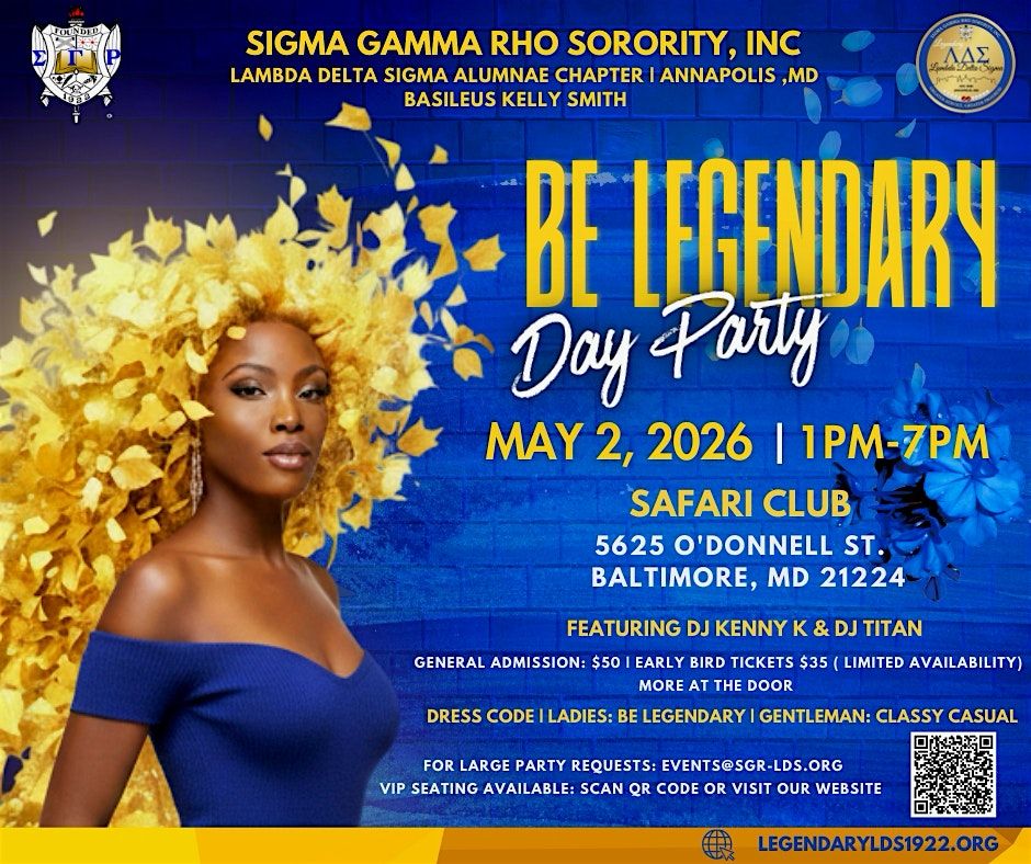 Join the Ladies of the Legendary Lambda Delta Sigma Chapter of Sigma Gamma Rho Sorority, Inc. for an unforgettable afternoon at our signature Be Legendary Day Party XII!