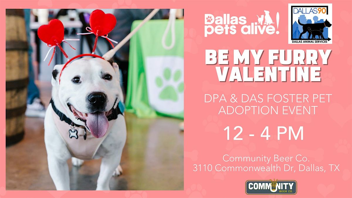 Looking for love this Valentine’s Day? Come meet your perfect match at Be My Furry Valentine, a special adoption event hosted in collaboration with Dallas Animal Services and Adoption Center, Dallas Pets Alive, and Community Beer Company
