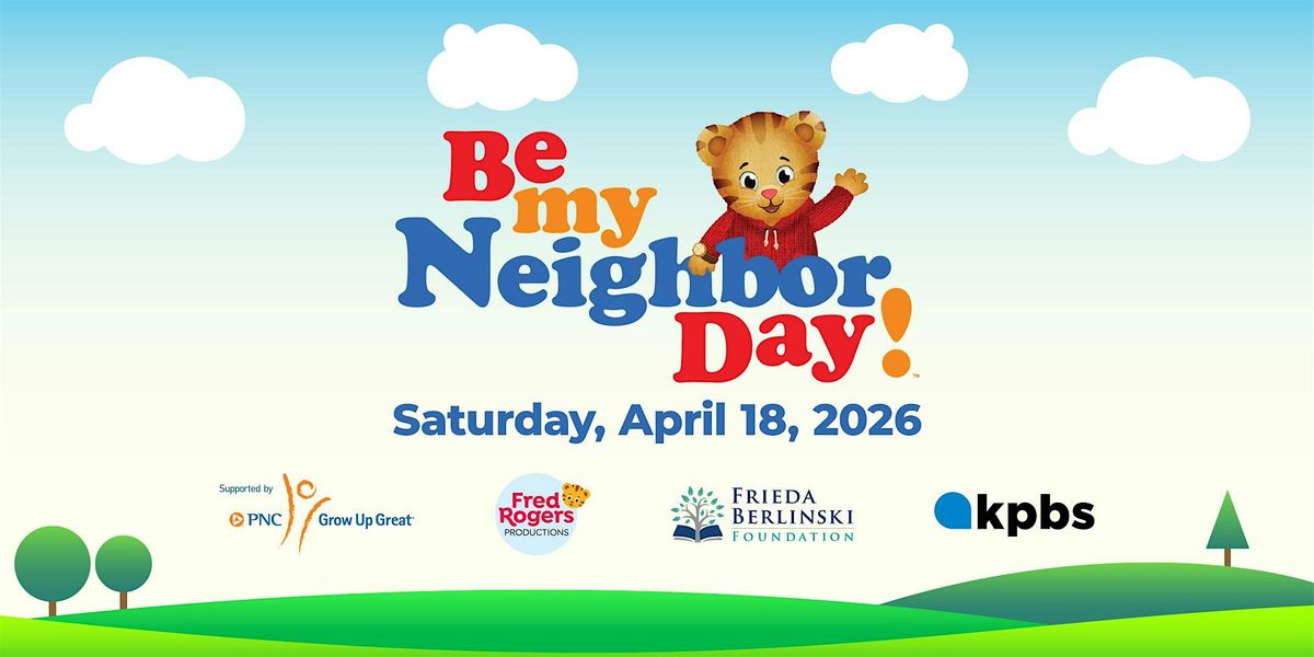 Join KPBS for San Diego’s fourth annual Be My Neighbor Day on Saturday, April 18 from 9:00 a.m. to 12:30 p.m. at KPBS on the San Diego State University campus, 5200 Campanile Dr., San Diego, 92182. Be My Neighbor Day is a free outdoor event for young children and families.