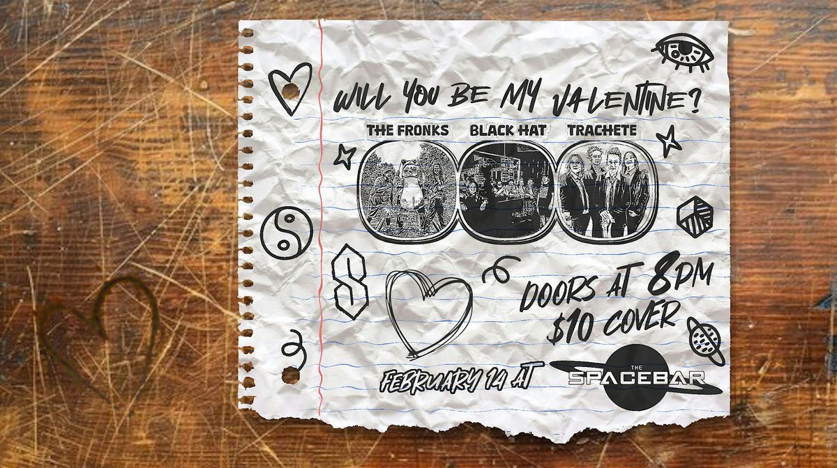 Join The Fronks, Black Hat, and Trachete for a fun Valentine's Day show! We're setting it up just like a school dance! There will be a kissing booth, and we're also bringing our own (Fronk Juice) spiked punch!