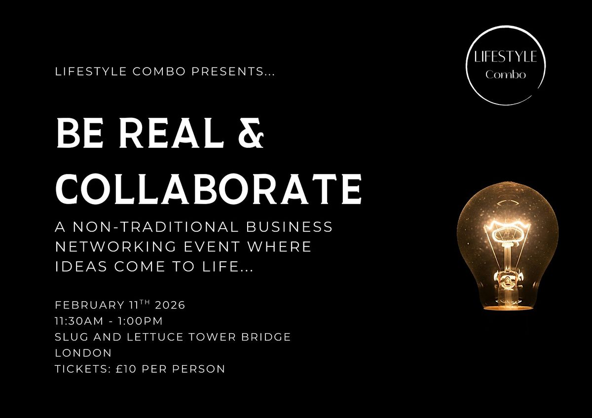Be Real and Collaborate is a 2hr networking event where you actually collaborate on an idea and establish a connection. Maybe your business is in AI, and the other person you connect with is in Construction - you might think it is a total mis-match, but guess again. Perhaps there is a problem solving idea that can help either of you encouraging a new collaboration. The aim of this event is that you agree to link, problem solve, create new ideas and foster growth between two or more companies that attend.