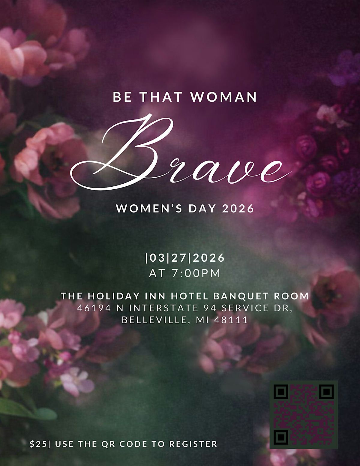 Hey ladies! Get ready to celebrate strength, courage, and empowerment at Be That Woman Brave. Join us in person for a night full of special performances, inspirational sharing, faith, and connection. Let's boost each other up and own our power within God, together! Light refreshments and beverages will be provided. Mark your calendar and come ready to shine!