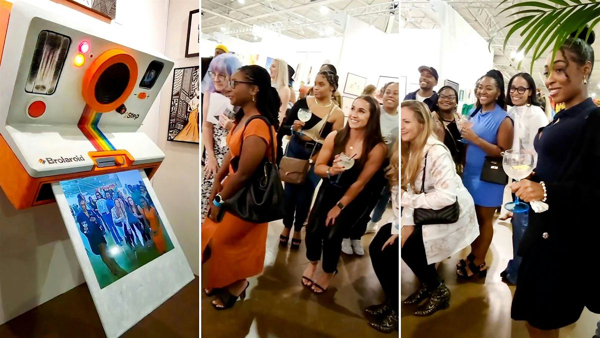 “The ‘Brolaroid 2’ is the refined version of the original that blew up at Spectrum Miami in 2023,” says Womack. “It’s a fun interactive ‘live selfie’ piece that’s also an entertaining people-watching medium.”